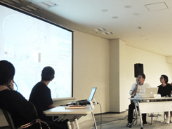 佐藤:はい。ガラスは、わかっていても失敗するのですよね。ガラス同士が当たらないようにするために、緩衝剤をはさみ込まないといけない。あらゆる部分で金属との接触を避けないといけない。石上さんのヴェネチアでのガラス建築でもそうだけど、施工途中の現場でやはり何枚か割れました。挟むはずだったけれども、セッティングが甘くなり、現場での施工ではどうしても発生してしまう。その難しさと、常に割れる危険性を感じながら扱うっていうことをやっていると、だんだんわかるようになるというか、扱い方をだんだん知って、もっとガラスを自由に扱えていくのではないかと感じています。先ほど岩瀬さんの話しにあったように、例えばちょっとしたテストやスタディで使用する材を、扱い難いガラスでやらずに、ヤング係数の同じアルミ材を使うとか、接合するときのクランプで挟むにしても、どのくらいの厚さの樹脂で挟むといいのかとか、設置面の納まりでも、緩衝材とした床を設置するとか、ちょっとした代用の素材で実験することによって、培っていける技術が積み上げられているという風に感じてもらい、それをどんどん発展させてもらえればいいかなと思っています。そして活用しづらいガラス材をどんどん利用してほしいなぁと思うのです。今回の展示でも、半年の期間で成立させるというのは相当大変なことなので、的を得た検証で成立まで持っていく楽しさを感じてもらえたのではないかと思います。