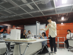 岩瀬:構造家の方と一緒に共同しているので、模型をつくっていく時に、どうしても実際の二分の一の板厚に合わせたガラスが手に入らなかったので、アクリルでつくっているんですけど、実際の強度など違ってくるので、お教え頂ければ幸いです。
