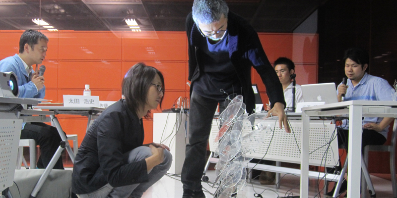 森の中にたたずむガラスのパビリオン。光がキラキラ輝き、周囲の木々が映り込む。近づいてみると、自分の姿が微妙にゆがんで映し出され、光、木々と混ざり合う。中に入っていくと、先ほどまでの世界とは少し違った世界が展開している。ガラス1枚1枚が異なった像を描き出し、それぞれが連動しつつも独自の挙動を示す。うろこの1枚を押し開けてみる。ふと風が入り込み、ガラス空間の中で淀みをつくりまた外へ吹き抜けていく。光は躍動し、風は流れと淀を生み、木々が多彩な表情を見せる。そこに人の振る舞いも重なり合わさり、バラバラに進行していたそれらが重層化されひとつの様相を形成する。それはもはや光、風、香り、音、風景といった概念ではなく統合され昇華された、得もしれない現象となって現れる。以上でプレゼンテーションを終わります。ありがとうございました。 |